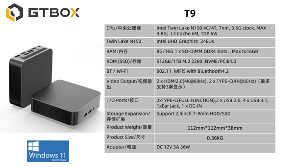 GTBOX T9 N150 8+512 WINDOW 11 PRO